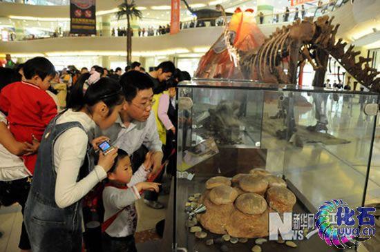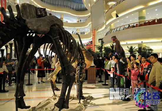 5月1日,扬州市民在"京华城"参观恐龙展。首个"五一"小长假期间,很多扬州市民选择近郊或市内游的休闲方式,往年长假期间以外地游客为主的瘦西湖、个园等景区也成了本地市民度假的好去处,而"京华城"恐龙展展出的3套完整骨架、12套典型化石以及17套仿真恐龙受到中小学生的青睐。来源:新华网(记者刘兆权/摄)