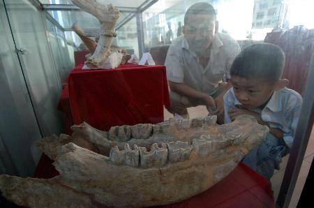 7月14日,在泥河湾博物馆内,一个小游客被披毛犀下颌骨化石吸引。位于河北阳原、蔚县一带的泥河湾遗址群以丰富的哺乳动物化石和人类旧石器遗迹而闻名,有“东亚地区人类文明的起源地”之称。目前已发现含有早期人类文化遗存的遗址80多处,其中部分早期人类文化遗存年代距今约170万年左右。屡有重大考古发现的泥河湾每年都吸引众多国内外专家学者和游客前来参观。