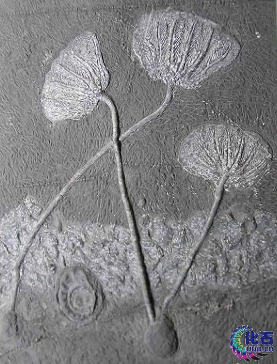 化石名称:海百合(Crinoidea)和菊石(Ammonoid)共生