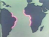 到白垩纪,大陆分裂进一步扩展,各大洋继续增大,南半球表现得最为明显,目前所见的海陆配置面貌亦已基本奠定。大西洋更为明显,南美洲与非洲已完全脱离,非洲与欧亚古陆之间仅在伊比利亚半岛有所连接,古地中海(特提斯海)成为比较宽阔的东西向延伸的长条海槽,其东端直达现今的西藏南部、云南西部,并向南延伸到印支半岛以至印度尼西亚一带。