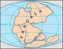 现在的各块大陆是从联合大陆经过某种形式的大陆位移,从而分裂并相互漂移开的。在其分裂过程中,先分成两块泛大陆,北面的是劳亚古陆,南面的是冈瓦纳古陆,中间间隔着古地中海(特提斯海)。