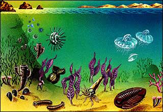 早古生代包括寒武纪、奥陶纪和志留纪。从寒武纪开始发生了广泛的海侵,是海生无脊椎动物为主的时代。其中以三叶虫、笔石、珊瑚、鹦鹉螺、腕足类、棘皮动物等最繁盛。奥陶纪还出现了最早的脊椎动物无颚类。晚古生代包括泥盆纪、石炭纪和二叠纪。此时陆地不断扩大,是陆生生物逐渐繁育的时代。鱼类在泥盆纪达到了全盛。石炭纪和二叠纪是两栖动物的全盛时代。海生无脊椎动物中除早古生代已有的门类继续发展外,还出现了低等菊石类。植物界在早古生代以水生菌藻类为主,到志留纪末期实现了从水生到陆生的飞跃,出现了裸蕨植物群。泥盆纪后期至二迭纪中期是孢子植物繁盛时代,二叠纪晚期出现了大量裸子植物。石炭纪和二叠纪在各个大陆上都形成了以蕨类植物为主的大森林,是地史上的重要成煤时期。