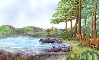 泥盆纪是古生代的第四个纪。“泥盆”一词来自英国西南的泥盆郡(Devonshire),由于这一时期的地层首先在此地研究,故就地取名(Se-dgewick及Murchison 1839)。日文音译,我国沿用。泥盆纪开始于距今4.16亿年,延续了5600万年。泥盆纪分为早、中、晚三个世。