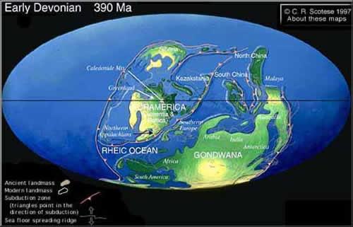 由于加里东运动的结果,北欧格罗平地槽区褶皱隆起,形成了广大陆地,并堆积了陆相“老红砂岩”。当时海水主要集中在古地中海区,向北进入乌拉尔海槽,泛滥于俄罗斯地台、捷克摩拉维亚、德国莱茵区、法国北部、英国南部。向东经喜马拉雅、昆仑、南天山海槽,直达华南。