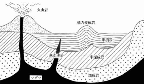 岩石是地壳的组成部分,根据成因可以分成三大类:火成岩(岩浆岩)、沉积岩和变质岩。岩石通常是几种矿物的集合体,不过有时只含一、两种矿物。矿物颗粒或融合、或胶结、或结合在一起就构成了岩石。