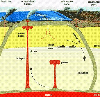 地球最上层约几十公里厚的一圈是强度很大的岩石圈,其下几百公里厚的一层是软流层,强度很小,在长期的应力作用下这一层的物质具有可塑性。岩石圈漂浮在软流圈上。在地球内部能量(原始热量和发射性热)释放时,地内温度和密度的不均匀分布,引起地幔物质的对流运动。地幔对流物质沿着洋底的洋中脊的裂隙向两侧方向运动,不断形成新的洋底。此外,老的洋底不断向外扩张,当它们接近大陆边缘时,在地幔对流向下拖力的作用下,插入大陆地壳下面,致使岩石圈发生一系列的构造运动。这种对流作用可使整个洋底在三亿年左右更新一次。岩石圈被一些活动构造带所割裂,分成几个不连续的单元,称为大陆板块。海底的扩张导致大陆板块发生运动。板块的相互挤压造成了巨大的山系;也有的地方,两个板块的岩石同时下沉,造成洋底的深渊;此外,板块的运动还造成了火山和地震。