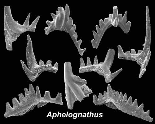牙形刺又称牙形石。形体微小,外形很象虫牙的一类微化石,但与虫牙不同的是牙形刺由磷酸钙组成,化石保存为浅黄色至褐色,透明或半透明,微细构造为薄片状,有的变为纤维状。一般小于1毫米,最大的约5毫米,根据外形可分为直或弯曲的单锥型,齿棒或齿片上长有细齿的复合型及由齿台和齿片组成的台型等三大类。绝大多数分散保存,也有由若干不同类型成行成对地排列在一起而形成牙形刺集群。