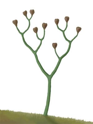 裸蕨类植物中最早出现的是光蕨类,它们的躯体非常矮小,高不过10厘米,茎很细弱,直径不到2毫米,茎作两歧式分叉,分叉不多。从光蕨又发展出来两类型,一种是莱尼蕨型,另一种是工蕨型。