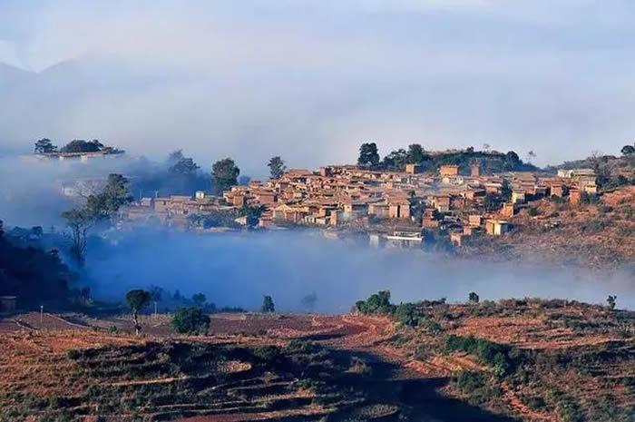 在哀牢山的半山腰,一片绿色掩映间,由石头垒成的土掌房高低错落却丝毫不显杂乱,它们在阳光下散发出神秘的光芒,这处宛若世外桃源的地方,便是红河哈尼族彝族自治州石屏县牛街镇的“化石村”老旭甸。