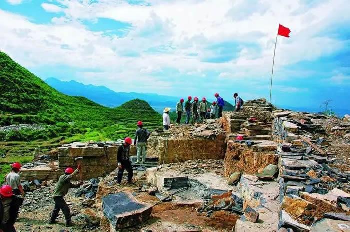 据了解,在老旭甸村,除了新建的学校和村委会,家家户户的房屋都从山那头的崖上就地取材建造起来,建房的每一块石头印刻了久远的岁月——它们都是历经3亿多年沧海桑田的植物化石,所以外地人都把老旭甸村称为“化石村”。