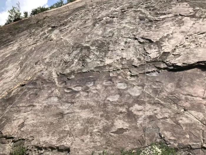 明白了,恐龙足迹可以反映出恐龙的生活习性。赛先生,从这张延庆千家店恐龙足迹的照片上看,足迹化石保存在公路旁陡峭的山坡上,是不是能说明生活在这里的恐龙都是登山高手?连体型较大的蜥脚类恐龙都身手矫健。要是这样的话,肯定是一个重大的发现吧?