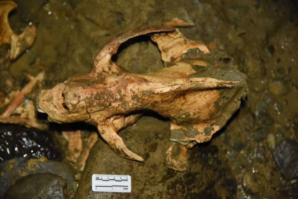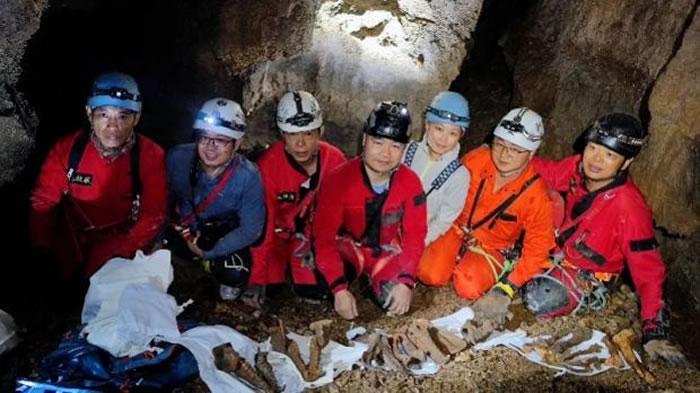 湖南湘西龙山一个落水洞中近日发现大熊猫化石。图片来源:长沙晚报