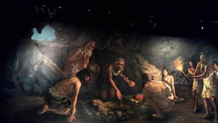 山顶洞人葬礼复原图。