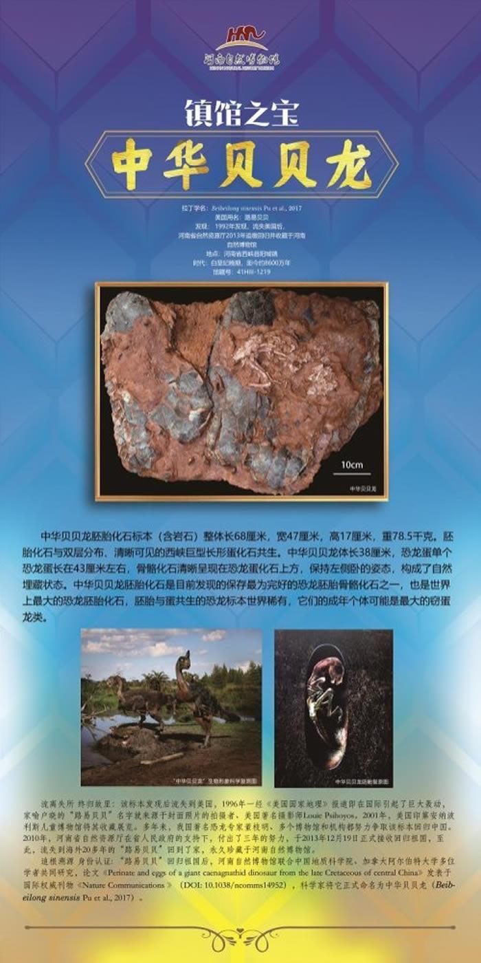 中华贝贝龙:世界恐龙发现史上一件珍贵而著名的标本,流失海外多年又失而复得的传奇经历闻名世界,是世界上最大的恐龙胚胎骨骼化石。