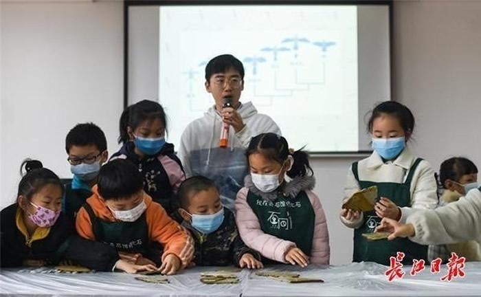 “我在武汉中华奇石馆修化石” 一群小学生探秘恐龙如何进化成鸟类(记者 许魏巍 摄)
