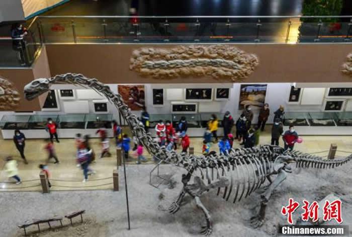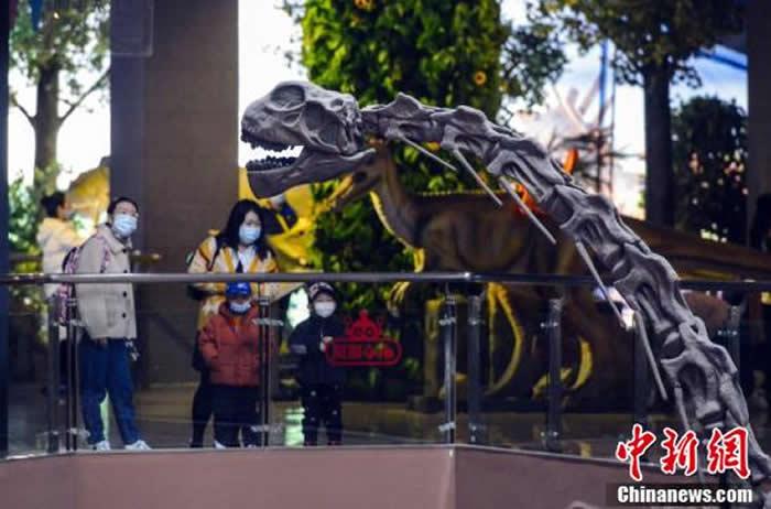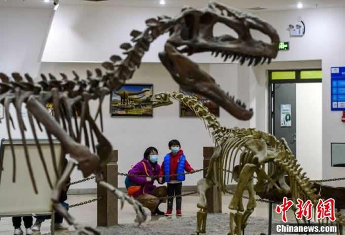 (化石网整理)据中新社(记者 刘新 摄):4月4日,在位于新疆昌吉回族自治州昌吉市的昌吉恐龙馆内,家长利用假期时间带着孩子到此研学游。据介绍,昌吉恐龙馆是新疆唯一一家恐龙主题博物馆,陈列着在新疆地区发掘的“亚洲第一龙”马门溪龙、霸王龙的祖先五彩冠龙和亚洲最大的剑龙类准噶尔将军龙等化石。