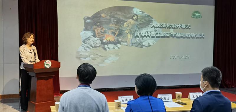 古脊椎所副所长王秀琴在开幕词中介绍了人类演化馆此次升级改造后,重点展出中科院古脊椎所近年来在古人类学研究方面取得的科研成果,系统地介绍人类起源与演化的历程。在展览中融入多媒体设计,增加互动体验,提高参观的趣味性和参与感,激发青少年探索人类起源的求知欲。改造后的人类演化馆将会是首批首都科普研学基地之一。