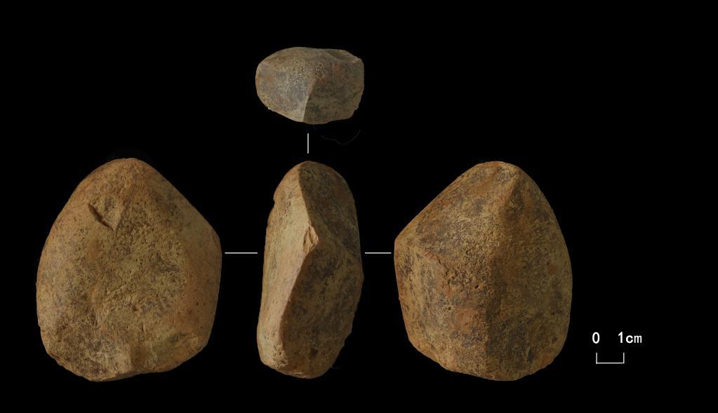 值得注意的是,本次考古发掘出土了有磨光痕迹的石器。经专业仪器观察发现,该石器磨制技术成熟,局部人工磨制痕迹清楚,磨制后的刃部棱脊线清晰明显。