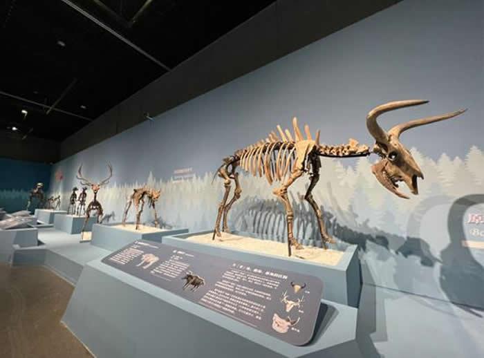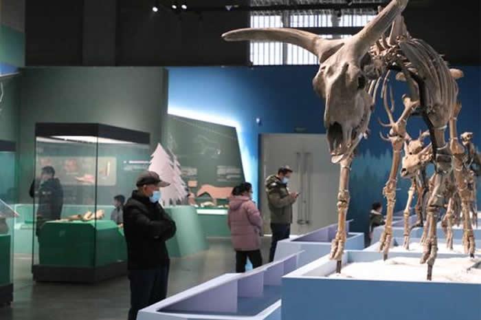 1月8日,由浙江自然博物院和大连自然博物馆共同举办的“古兽传奇——大连第四纪古生物化石特展”亮相杭州,展览分为“冷暖交替的第四纪”“大连地区的第四纪古生物”“化石骨架展示区”“互动触摸展区”四个区域,展出了第四纪古生物化石200余件,包括著名的大连马、泥河湾披毛犀、长鼻三趾马、肿骨鹿、原大羚、巨副驼、李氏野猪等动物化石,还同时展出诺氏驼、恰克图转角羚羊、原始牛、最后斑鬣狗等珍贵化石骨架。