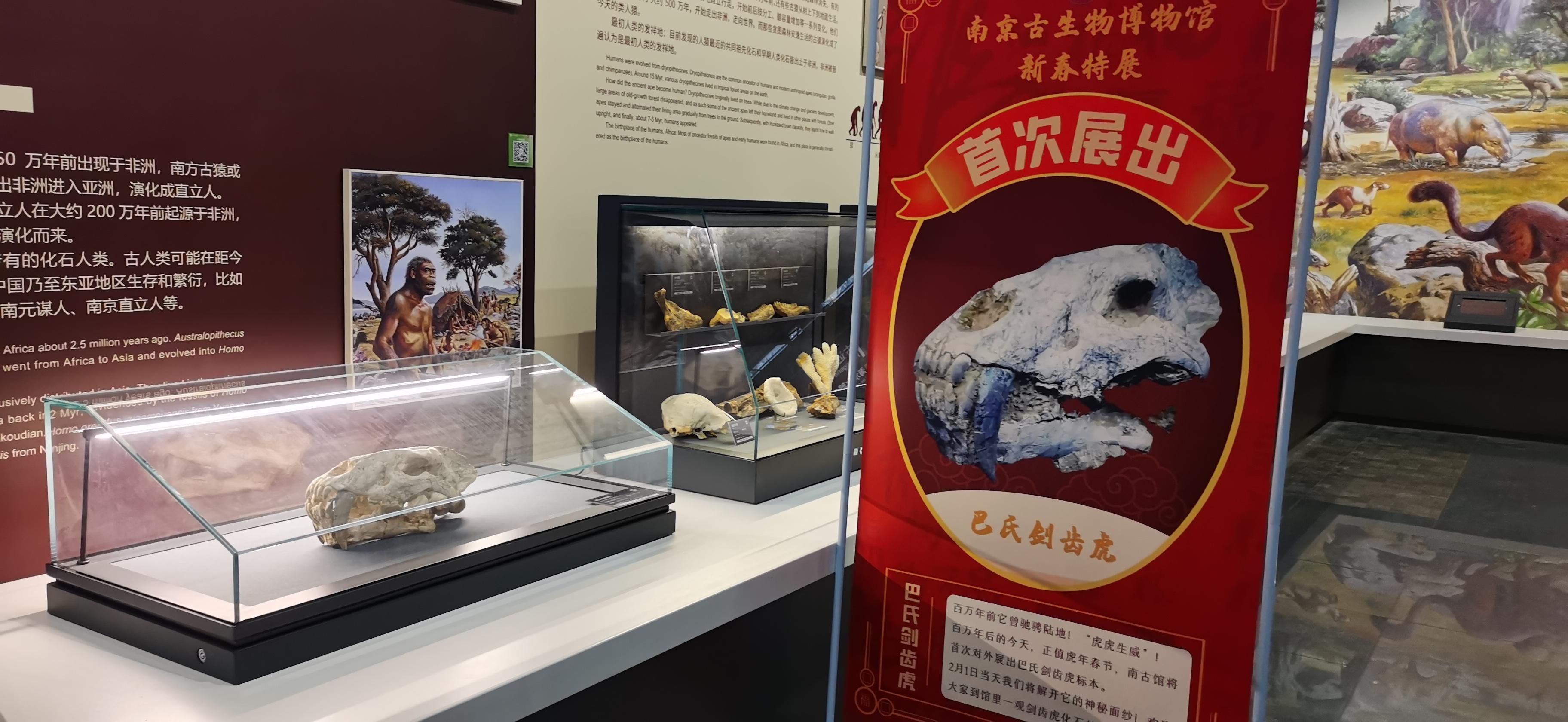 期间,南京古生物博物馆举办了与“剑齿虎”有关的珍稀化石专题展览,首次对公众展示一件研究所收藏的“巴氏剑齿虎”头骨化石,结合14块展板,系统介绍了剑齿虎家族的分类、分布、演化和绝灭等科学知识。为了配合剑齿虎头骨化石的展出,博物馆联合上海自然博物馆,在3D电影厅每日两次免费播映“剑齿王朝”古生物科普影片,使观众更生动直观地了解了600万年前,巴氏剑齿虎兄弟在当时中国甘肃和政大草原上繁衍生活的科学故事。此外,春节期间古生物博物馆的达尔文实验站化石修复活动、古生物公益专业讲解、科学咖啡厅和文创商店等,均有与虎和龙有关的品鉴和体验等活动,深受广大观众的欢迎。