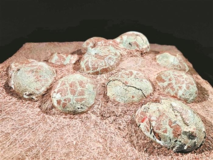 工作人员历时近3年时间修复的一窝恐龙蛋。