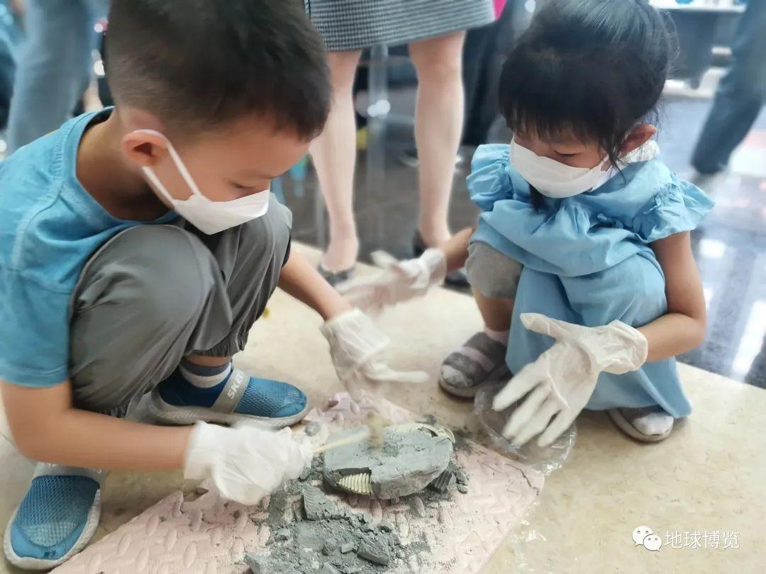 你知道挖掘化石是怎样一种体验吗?此次科普日活动还专门为小朋友准备了化石挖掘体验活动,小朋友们化身小小考古学家,亲自动手,真实再现了考古学家发现、挖掘和修复化石的过程,加深了孩子们对地球科学的理解,当他们低下头专注挖掘时,他们的内心已经拥有了一个无限广博的世界。
