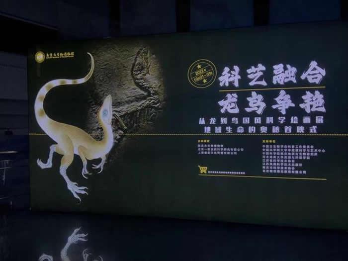 南京古生物博物馆馆长王永栋介绍,本次开启首展的系列作品正是以国际古生物科研成果为依据,以发现自中国辽西地区的18件恐龙到鸟类进化的关键化石为原型,包括原始中华龙鸟、嗜角窃蛋龙、邹氏尾羽龙、赵氏小盗龙、千禧中国鸟龙、平衡恐爪龙、华美金凤鸟、赫氏近鸟龙、圣贤孔子鸟和朝阳会鸟等属。通过参考现有的骨骼化石及还原图,在国内首次采用工笔国画的艺术手法进行科学复原绘画创作。
