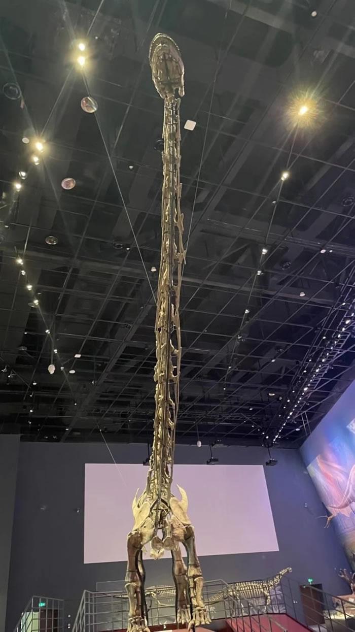 最吸睛的无疑是摆放在C位的亚洲最大恐龙化石——全长约22米、高约4米的合川马门溪龙化石。