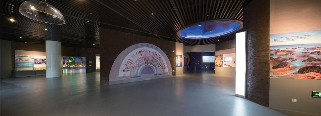 展厅以地质时间为线索,按生命演化的各个阶段分别介绍地球的生命起源和演化的进程,使观众了解生命从何而来,向何处发展。设置前言展区、前寒武展区、古生代展区、中生代展区、新生代展区、探讨总结与互动展区等 6 个主要展区。选择各个时代具有代表性和划时代意义的生物演化事件陈展,采用实物标本、复制标本、图文展板、化石图片、史前生物景观图、模拟场景及多媒体等形式表现。