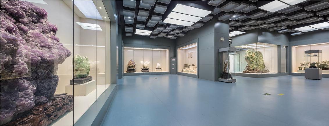 ( 1 )序厅。序厅为各类参观人员集散的场所,主要展品有目前国内最大的石英球和《生命演化》汉白玉浮雕壁画,另包括博物馆简介、展馆布置图等辅助宣传信息。