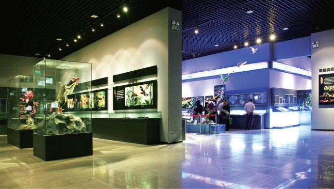 重新规划设计展厅布局,规划及展示宇宙的演化、地震体验、矿产资源分布、大陆板块漂移、火山爆发模拟体验、化石埋藏成因、鸟类飞行起源板块及展板、挂图、照片等 500 余幅, 5 个大型地质岩层模型, 2 幅大型木浮雕, 40 台 / 套声、光、电等多媒体展示、互动设备等,系统介绍了宇宙、地球、地震、恐龙进化、鸟类起源、被子植物起源、古生物演化知识。
