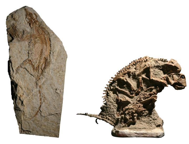 攀援始祖兽(左) 鹦鹉嘴龙(永恒的爱)(右)