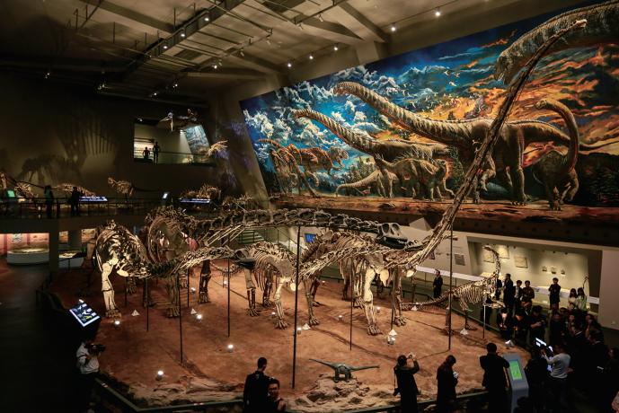 展览以各种恐龙骨架标本为中心展品,辅以展示恐龙头骨、牙齿、蛋、脚印,以及与恐龙同时代的动植物化石,以“恐龙之前的生物演化”“恐龙及其生活的世界”“恐龙灭绝探秘”“恐龙之后的生物界”四大板块依次展开,充分揭示古生物化石发现、发掘、采集和研究的相关内容。