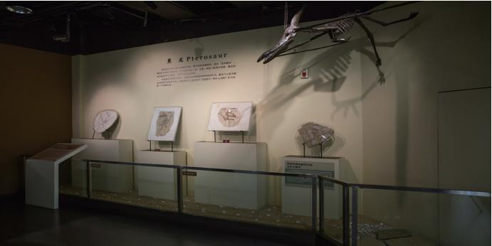 展厅中间展示有目前仅发现一块标本的林氏星海鸟,属名“星海”代表了标本收藏单位“大连星海古生物博物馆”。
