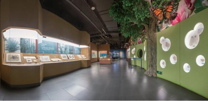 在恐龙展品的对面,是一群早在距今 4 亿年时就出现、见证过恐龙的兴衰史,并且顽强地活到了今天的小精灵们,它们就是我们所认识的一些昆虫。