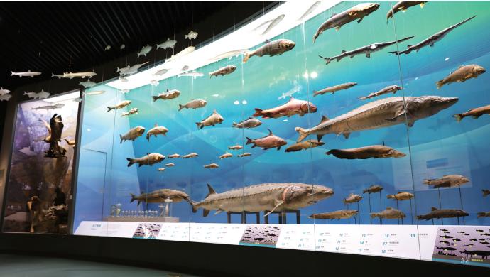 2 )进化厅。荟萃大量精美的古生物化石,从功能形态角度揭示古生物对多样性环境的适应变化,同时突出生物进化阶段,以演化的重要节点为线索,串联起一场波澜壮阔、跌宕起伏的演化大戏,展示了生物演化的瑰丽画卷,宣传了达尔文的进化学说。