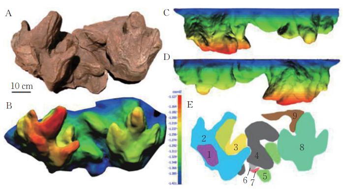 根据专家研究,此足迹为 9 个足迹的重合体,是由多个恐龙在不同时间留下的足迹,表明当时该区域恐龙活动十分频繁。此足迹产出于莲花保寨,目前展出于綦江博物馆。