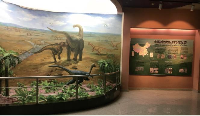 该厅主要展出河源恐龙足迹化石拓模、国内外其他地区的代表性恐龙 足迹拓模、虫迹化石等,以图文展板的形式介绍恐龙足迹科普知识。