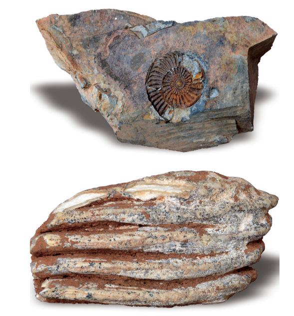 菊石是距今约2亿年的三叠纪的一种生活在海底的无脊椎动物,其外 形酷似盛开的优雅菊花,旋转的内纹犹如小石磨。河源地区的菊石化石最早发现于1997年,河源恐龙博物馆馆藏菊石化石143件,直径最大的有38 厘米,最小的只有指甲那么大。它们是地质年代最准确的实物依据之一。 由此可以推断,在恐龙出现前,河源是一片汪洋大海,浩瀚的海洋中孕育着 无数生命。然而经过一次又一次的造山运动,河源地区渐渐脱海成陆,如 菊石一样的小生灵被“搁浅”,在沧海桑田的转变中成了精美的化石。