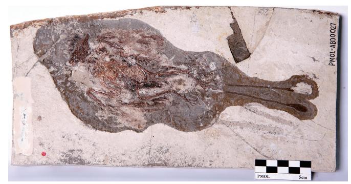 鸟类的羽毛分为对称和不对称两种:对称型的羽毛不适用于飞行或无 法飞行,只适用于滑翔;而不对称的羽毛才真正适用于飞行。圣贤孔子鸟 的翅膀上长有不对称的初级飞羽和次级飞羽,其身体构造表明其应具有一 定的飞行能力。孔子鸟是在热河生物群中发现的数量较多的鸟类,它的名 字来源非常有趣:其命名人侯连海教授是山东人,因崇尚故乡儒家文化而 以孔子命名这种古鸟类。