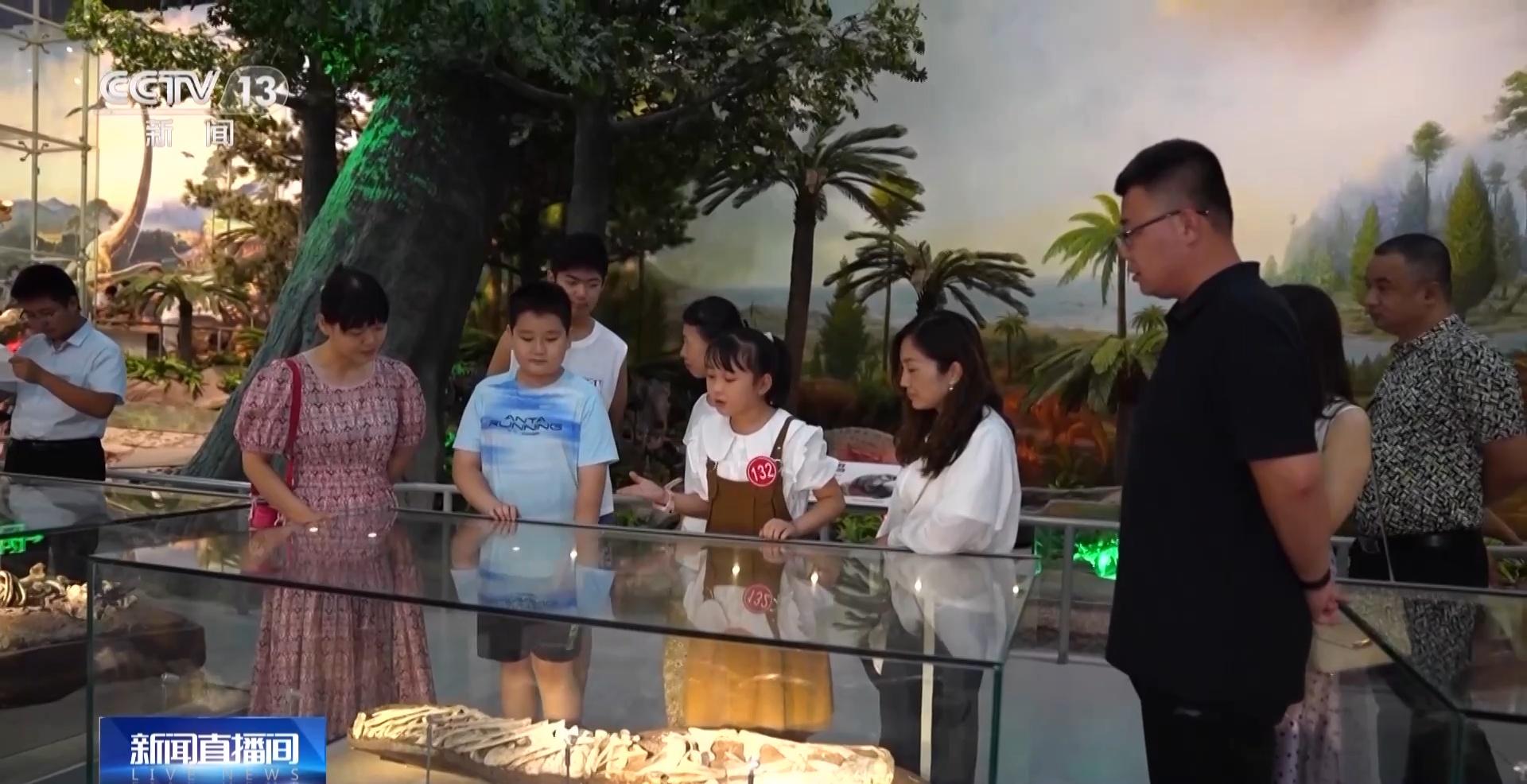 总台记者 刘媛媛:炎炎夏日,大家有没有想过和亿万年前的古生物来一场奇妙邂逅呢?现在在我身侧的就是生活在大约2.6亿年前的大型植食性动物锯齿龙,现在正被陈列在山西地质博物馆的远古物种展厅当中。虽然说现在距离开馆还不到一个小时的时间,但是现场已经非常热闹了,有很多的大朋友和小朋友都来赶赴这场约会。博物馆的工作人员告诉我,暑期到来之后,这里的客流量迎来了增长,每天的客流量大约可以达到4500人,已经接近了这里的游客接待上限。