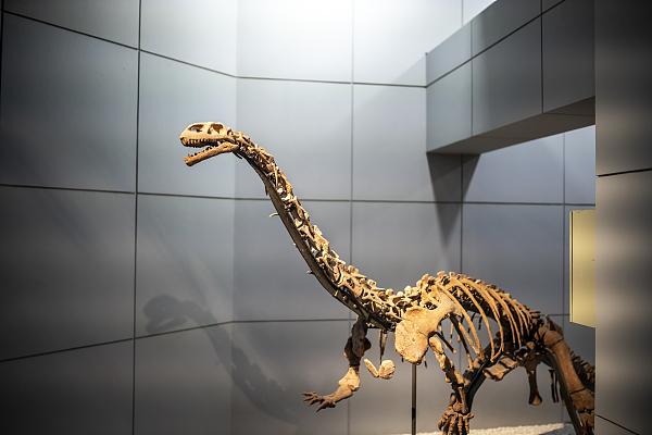 ↑ 浙江自然博物馆地球生命的故事陈列展中的恐龙化石 图源:视觉中国
