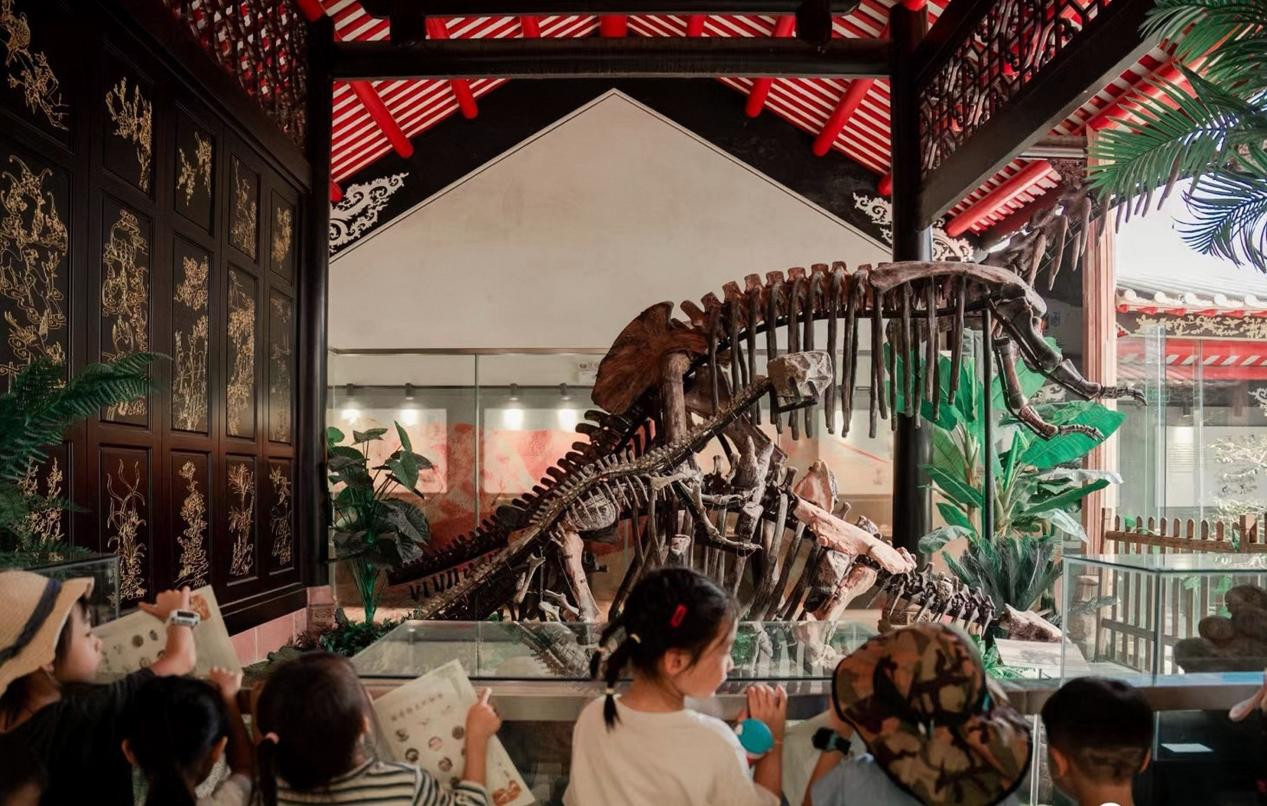 明代古祠堂大量使用了红砂岩,两个天井采光良好,其内设有岭南史前历史展,用1028件科学标本展示了“岭南恐龙世界之最”“岭南巨猿世界之谜”和“岭南是现代中国人的起源地”,80%的标本来自岭南本土,向观众展示出在岭南大地上曾经发生的生命传奇故事。