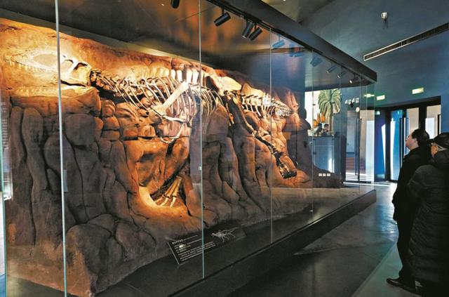 体长约7.6米、高度接近3米,董氏中华猛龙的化石骨架令游客纷纷驻足惊叹。更难能可贵的是,它是一具接近完整的化石骨架,也是保存最完整的大型兽脚类恐龙标本之一。