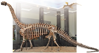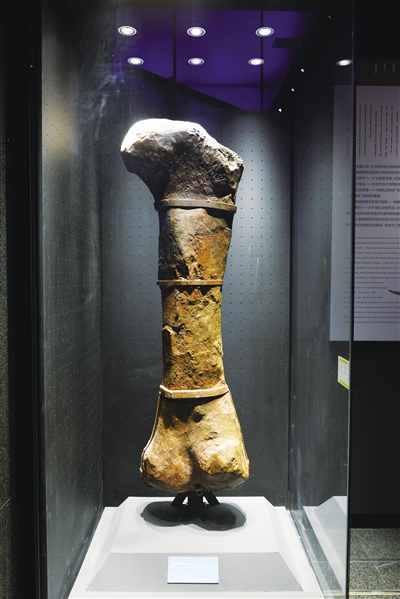 ↑ 查干诺尔龙股骨 化石 高1.8米