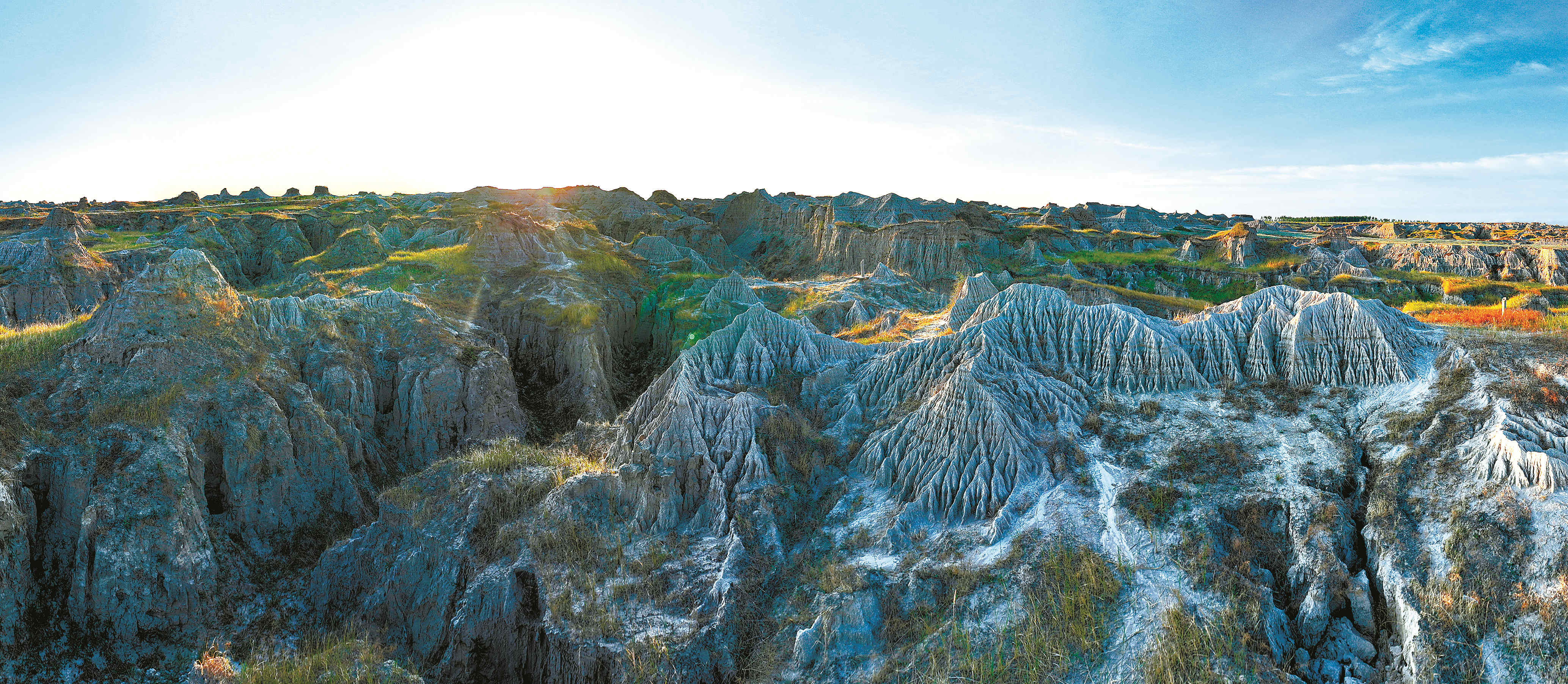 ↑ 吉林乾安泥林国家地质公园位于大布苏湖东岸,这里有两级阶地,沟壑纵横,锯齿狼牙,是潜蚀地貌的典型代表,当地人称之为“狼牙坝”
