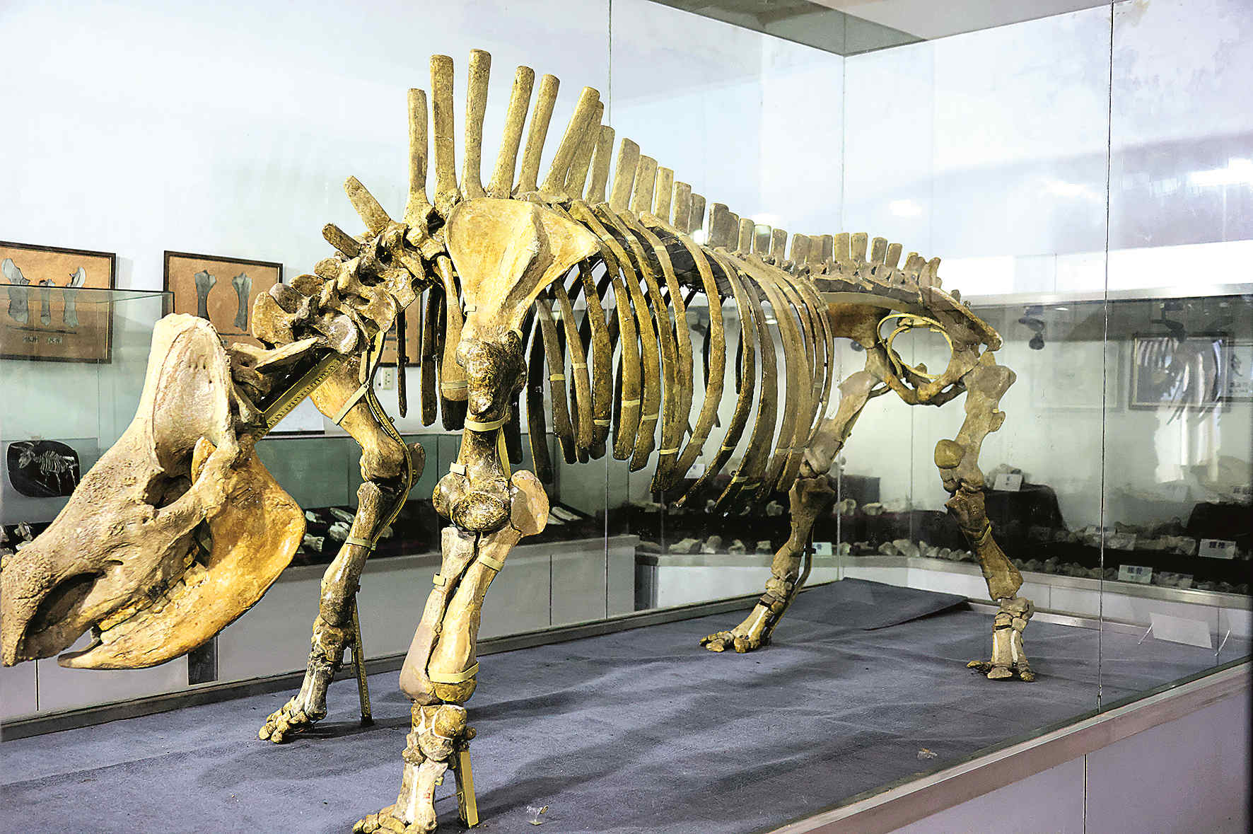 ↑ 披毛犀复原骨架
