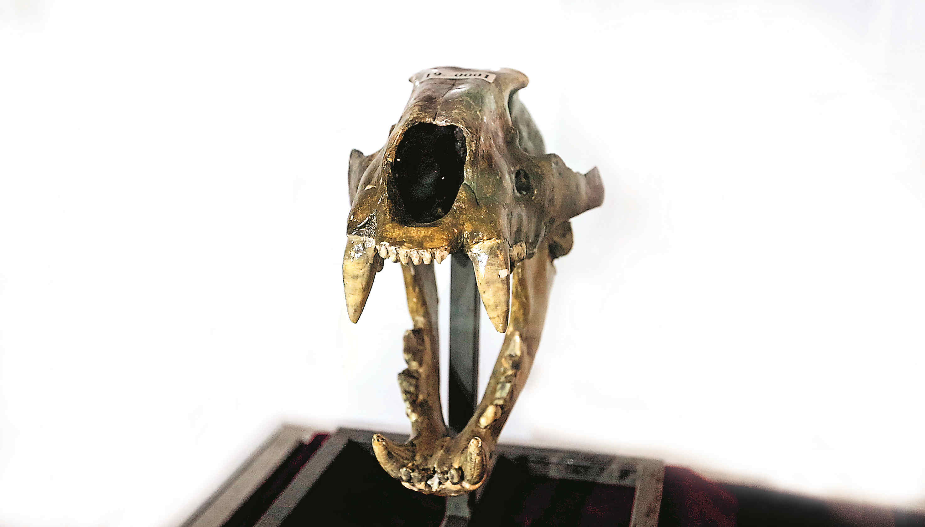 ↑ 剑齿虎头部化石