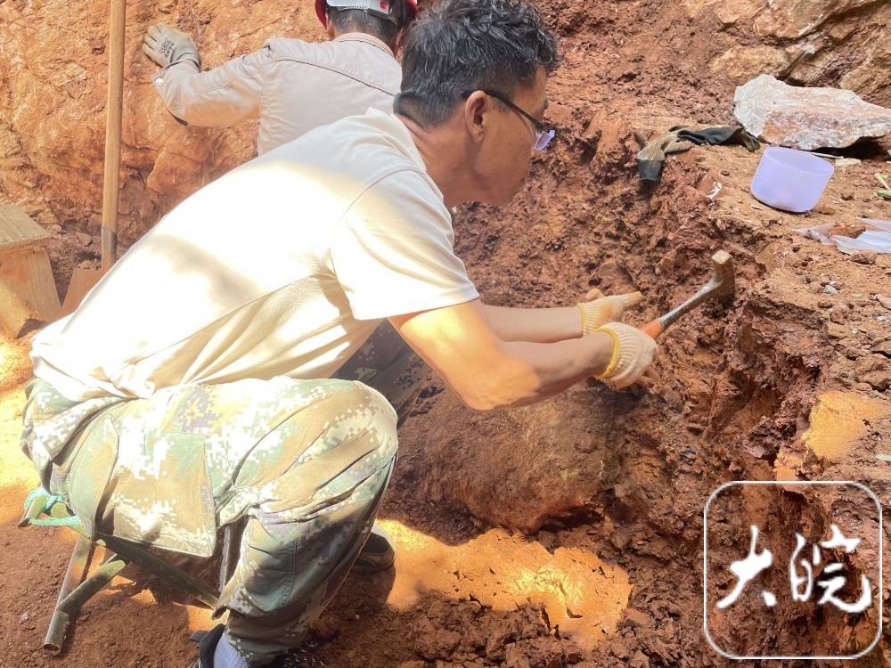 “有发现!”只见一名工作人员停止了手中的工作,叫来了一位专家。大皖新闻记者看到,在裂隙中的土壤中,一块拳头大小的不规则骨头化石暴露了出来。经专家初步鉴定,应该是属于鸟类的颧骨。“这块颧骨比较大,由此可推测出这种鸟类的身形也比较大,至少有老鹰大小!”这位专家告诉大皖新闻记者。