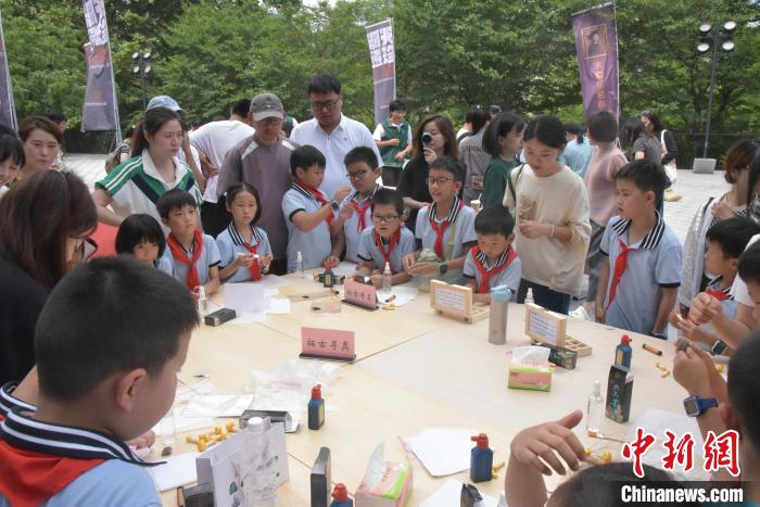 开幕式现场,来自武汉20余所学校的100余名中小学生,在武汉大学师生志愿者带领下,参观展览并参与了“探秘洞穴,玩转史前”系列体验活动,感受中华远古文化的深厚内涵。